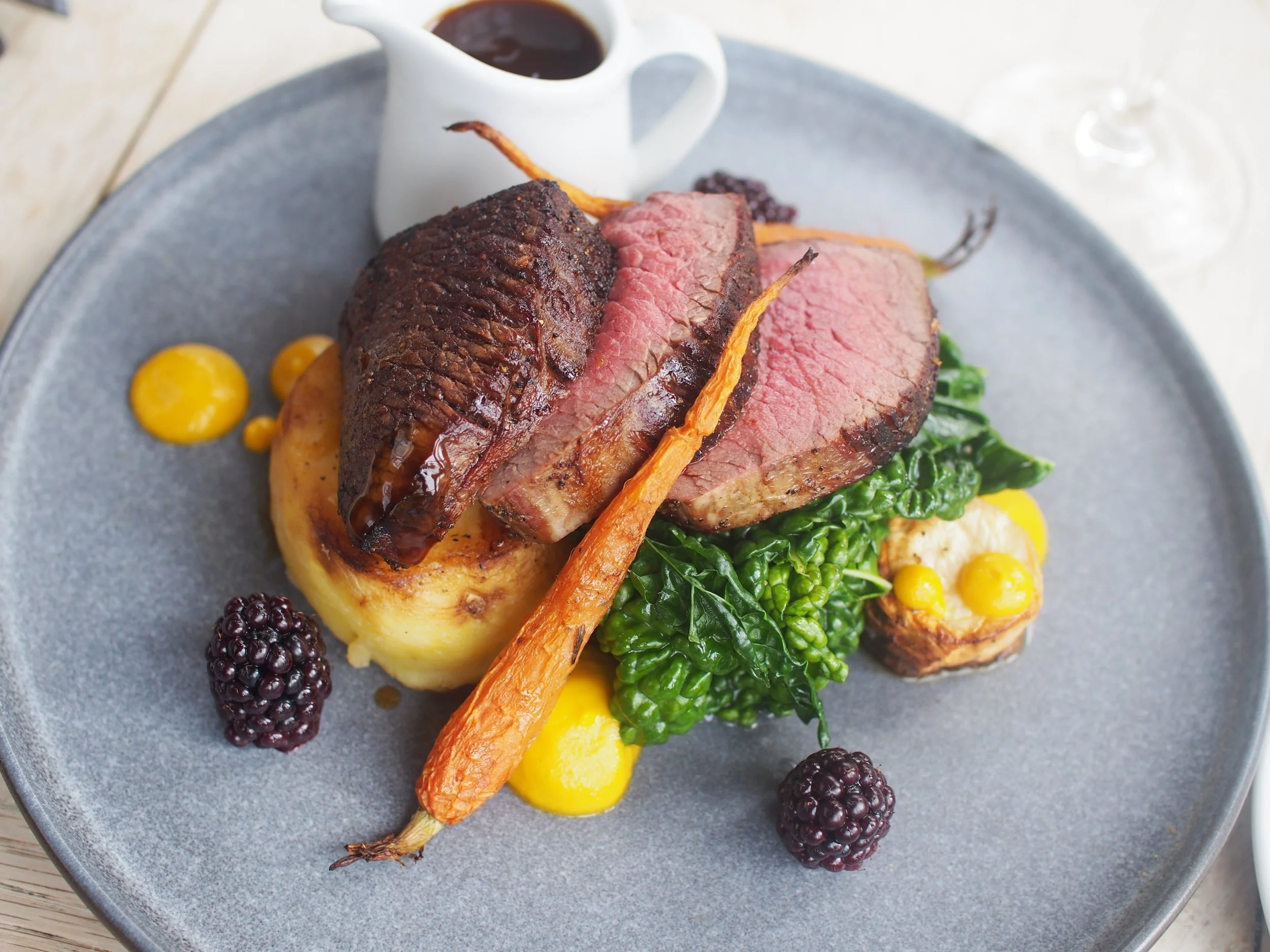 Our wonderful team are devoted to providing fresh, seasonal food (two rosette AA), a fine drinks list including real ales, and cheery, professional service.